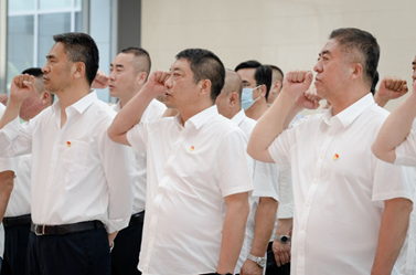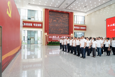 參觀前,參加活動(dòng)的黨員干部集體面對(duì)鮮紅黨旗重溫入黨誓詞。鏗鏘有力的宣誓聲,表達(dá)了唐山公交廣大黨員干部對(duì)黨忠誠(chéng)的鄭重承諾,始終不忘初心、牢記使命、聽黨話、跟黨走的堅(jiān)定決心。