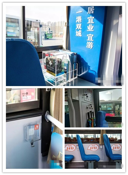 “一港雙城”示范車廂內(nèi)設(shè)置了服務(wù)小棧,內(nèi)有急救包、飲用水、手機(jī)充電寶、老花鏡、雨傘、唐山旅游宣傳圖冊(cè)等方便乘客隨時(shí)使用。在每個(gè)靠窗的座椅處,還設(shè)置了小型的垃圾收納盒和置物掛鉤。此外,駕駛員學(xué)習(xí)強(qiáng)國(guó)信息小播報(bào),在平峰期首末站時(shí),為乘客播報(bào)一些當(dāng)前的事實(shí)信息,豐富乘客乘車體驗(yàn)。