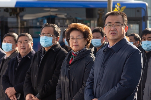 11月24日上午,唐山市人大常委會主任郭彥洪、市政府副市長王海以及60名人大代表到唐山站公交樞紐對今年唐山公交承擔(dān)的民心工程進展情況進行調(diào)研。唐山市城管執(zhí)法局四級調(diào)研員石中波、唐山公交總經(jīng)理劉東占參加活動。