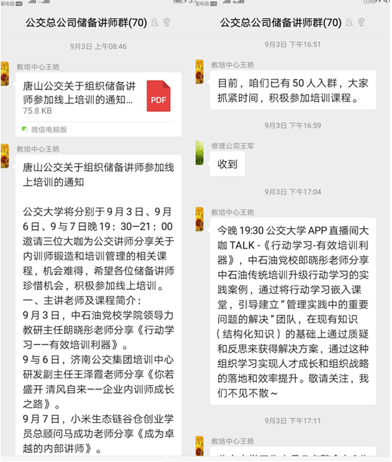 結(jié)合當(dāng)前疫情防控形勢(shì)及總公司儲(chǔ)備講師培養(yǎng)需求,總公司教培中心積極轉(zhuǎn)變工作思路,多次與公交大學(xué)及公交同行對(duì)接,經(jīng)過前期精心籌備,分別于9月3日、9月6日、9月7日晚19:30-21:00組織總公司儲(chǔ)備講師參加了公交大學(xué)關(guān)于“講師技術(shù)和講師成長(zhǎng)”相關(guān)的三場(chǎng)免費(fèi)在線直播培訓(xùn)課程。