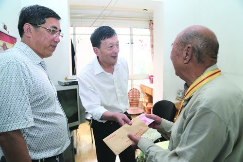 為給抗戰(zhàn)期間及解放前參加革命工作的老同志送去黨和政府的關(guān)懷和慰問,9月23日上午,黨委書記、副總經(jīng)理夏保良,工會主席王學(xué)軍一行分別看望了郝書洛、劉志新兩位老同志,并送去“中國人民抗日戰(zhàn)爭勝利70周年紀(jì)念章”。夏書記關(guān)切地詢問了老同志們的身體和生活情況。他說,老同志們?yōu)楣坏陌l(fā)展和建設(shè)做過很大的貢獻(xiàn),公交會永遠(yuǎn)記得。他祝愿兩位老人身體健康,生活美滿,也希望他們在安享晚年的同時,繼續(xù)關(guān)心公交,發(fā)揮余熱,為公交的發(fā)展提意見、獻(xiàn)智慧。