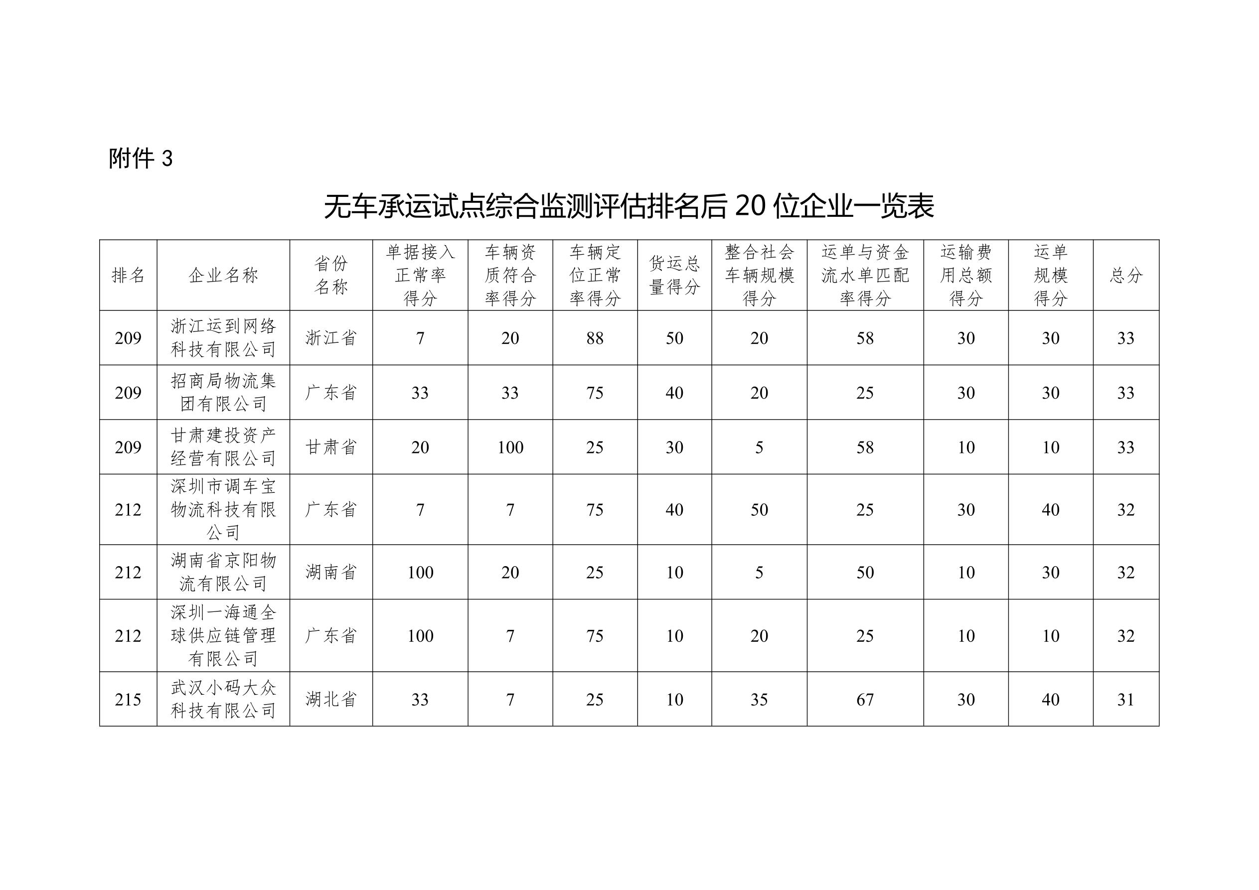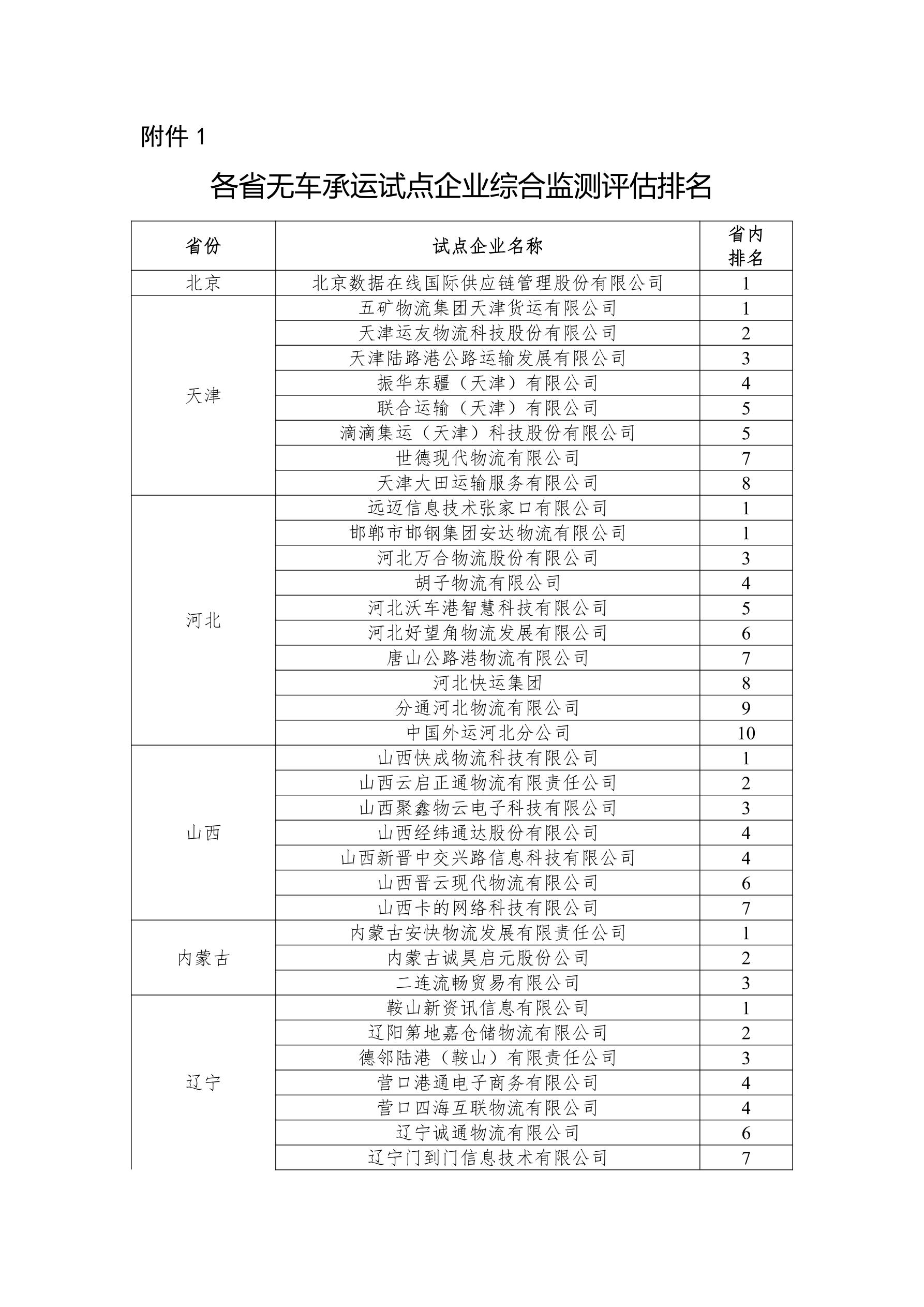 按照《交通運輸部辦公廳關(guān)于深入推進無車承運人試點工作的通知》(交辦運函〔2018〕539號)的工作安排,我部對試點企業(yè)進行綜合監(jiān)測評估排名(詳見附件)?,F(xiàn)將有關(guān)情況通報如下: