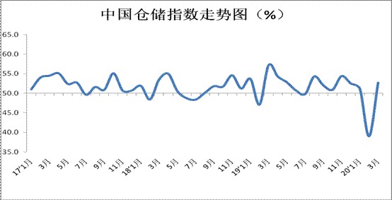 中國物流與采購聯(lián)合會發(fā)布的2020年3月份中國物流業(yè)景氣指數(shù)為51.5%,較上月回升25.3個百分點(diǎn);中國倉儲指數(shù)為52.7%,較上月回升13.7個百分點(diǎn)。