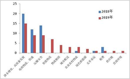 2019年物流業(yè)政策引領(lǐng)行業(yè)發(fā)展,順應(yīng)行業(yè)需求,政策前瞻性、針對性和有效性持續(xù)提升,政策體系更趨完善。從政策數(shù)量看,2019年物流相關(guān)政策近60條,相關(guān)政策密集出臺對物流高質(zhì)量發(fā)展起到良好的促進作用;從政策分布看,政策聚焦物流領(lǐng)域降本增效、現(xiàn)代供應(yīng)鏈創(chuàng)新應(yīng)用、農(nóng)村農(nóng)業(yè)物流等一系列重點問題,既與往年相比具有較好的延續(xù)性,又突出了高質(zhì)量發(fā)展的重點,有助于行業(yè)更好實現(xiàn)轉(zhuǎn)型升級,幫助物流企業(yè)健康、良性發(fā)展。