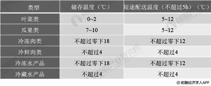 各類主要冷鏈物流農產品儲運環(huán)境要求分析情況