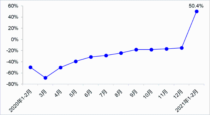 1—2月,完成貨運量67.7億噸,比2020年同期、2019年同期分別增長48.5%和16.0%,其中公路貨運量比2020年同期增長63.8%,水路貨運量比2020年同期增長25.4%。
