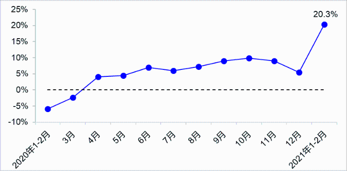 1—2月,受去年低基數(shù)、就地過年等因素疊加影響,投資、貨運量、港口貨物吞吐量等指標(biāo)比2020年同期均實現(xiàn)大幅增長,營業(yè)性客運量有所下降。與2019年同期相比,投資、貨運量、港口貨物吞吐量等生產(chǎn)相關(guān)指標(biāo)實現(xiàn)兩位數(shù)增長,營業(yè)性客運量、城市公共交通客運量等生活相關(guān)指標(biāo)降幅明顯。