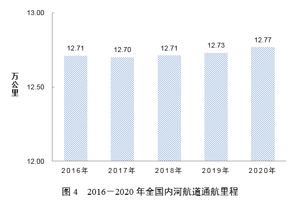 年末全國內(nèi)河航道通航里程12.77萬公里,比上年末增加387公里。等級航道里程6.73萬公里,占總里程比重為52.7%,提高0.2個(gè)百分點(diǎn)。三級及以上航道里程1.44萬公里,占總里程比重為11.3%,提高0.4個(gè)百分點(diǎn)。