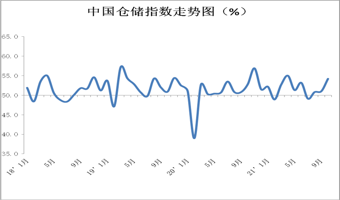 中國物流與采購聯(lián)合會發(fā)布的2021年10月份中國物流業(yè)景氣指數(shù)為53.5%,較上月回落0.5個百分點;中國倉儲指數(shù)為54.2%,較上月回升3.2個百分點。