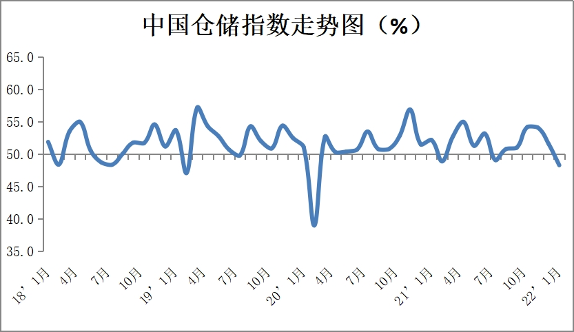 中國(guó)物流與采購(gòu)聯(lián)合會(huì)發(fā)布的2022年1月份中國(guó)物流業(yè)景氣指數(shù)為51.1%,較上月回落1.5個(gè)百分點(diǎn);中國(guó)倉(cāng)儲(chǔ)指數(shù)為48.3%,較上月下降3.3個(gè)百分點(diǎn)。