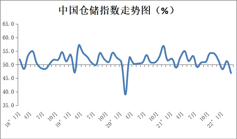 中國物流與采購聯(lián)合會發(fā)布的2022年3月份中國物流業(yè)景氣指數(shù)為48.7%,較上月回落2.5個百分點;中國倉儲指數(shù)為46.9%,較上月回落4.4個百分點。