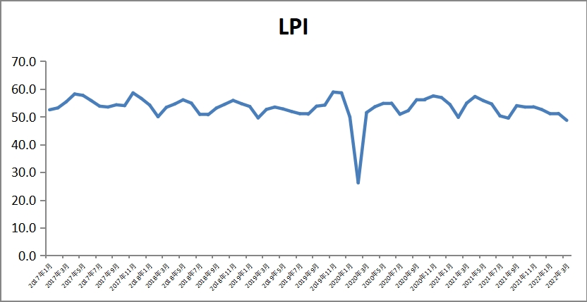 中國物流與采購聯(lián)合會(huì)發(fā)布的2022年3月份中國物流業(yè)景氣指數(shù)為48.7%,較上月回落2.5個(gè)百分點(diǎn)。分項(xiàng)指數(shù)也多有回落。指數(shù)走勢(shì)變化顯示,3月份受全國多點(diǎn)散發(fā)疫情和地區(qū)防控政策差異影響,物流供需增速趨緩,跨區(qū)流通難度加大,物流促通保暢能力下降,供應(yīng)鏈上下游復(fù)蘇受阻。